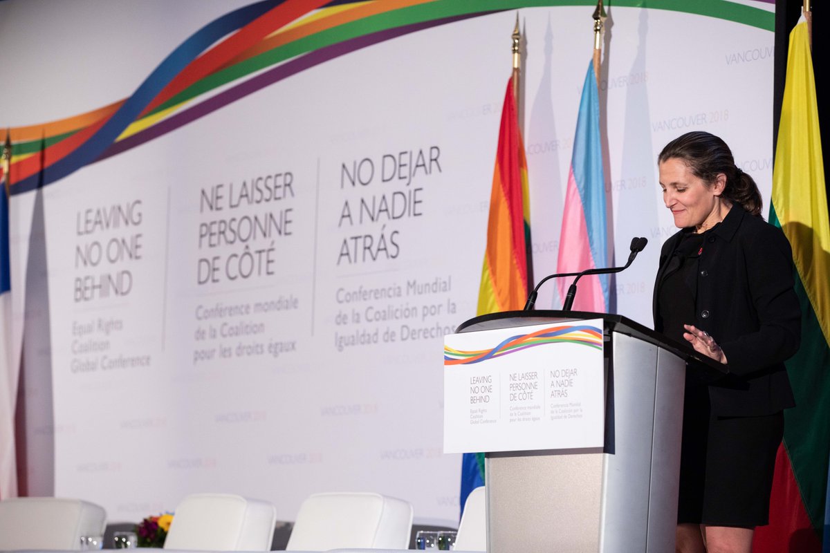 Minister Freeland addresses the #EqualRightsCoalition Conference. #CoaliciónporlaIgualdaddeDerechos #FreeToBeMepic.twitter.com/ICoXSLKcVo