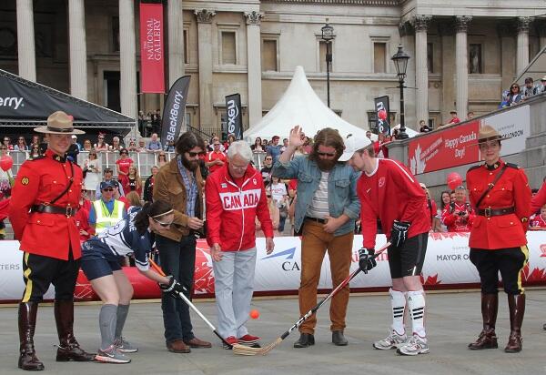 “@CanadianUK: @DFATDCanada #CanadaDay from London, UK! We've got street hockey, mounties, poutine & @thehipdotcom. pic.twitter.com/g9I8pFN6vS”