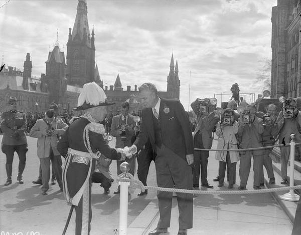 #TBT 1958: PM Diefenbaker meets with first Governor General of Canadian descent, Vincent Massey on Parliament Hillpic.twitter.com/BlsqbEU7VB