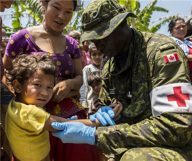 Medical Officer, Captain Maurice Innis examines a child in #Khadkagaun, #Nepalpic.twitter.com/VHrcgqey4g