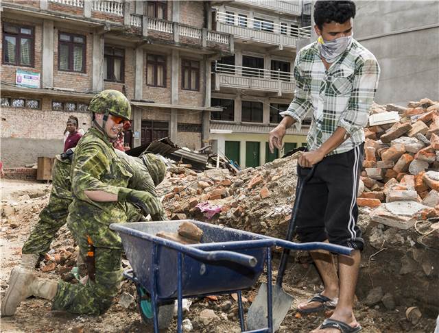 CAF members from 4 Engineer Support Regiment get help from local residents with clearing of a street in Sankhu #Nepalpic.twitter.com/U62Q7Tp0M0