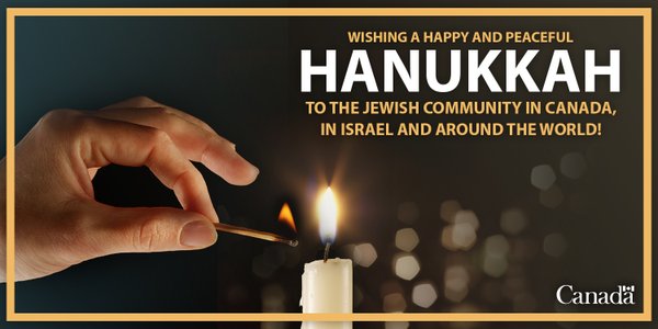 Wishing a happy and peaceful #Hanukkah to the Jewish community in Canada, in #Israel and around the worldpic.twitter.com/9TpRMHueYt