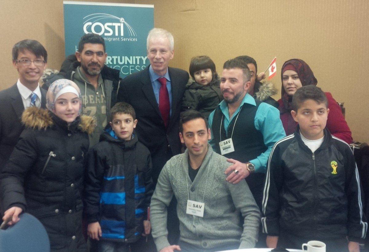 Min Dion greeting #SyrianRefugees on their recent arrival to Canada #WelcomeRefugeespic.twitter.com/7Zcpp2GhGr