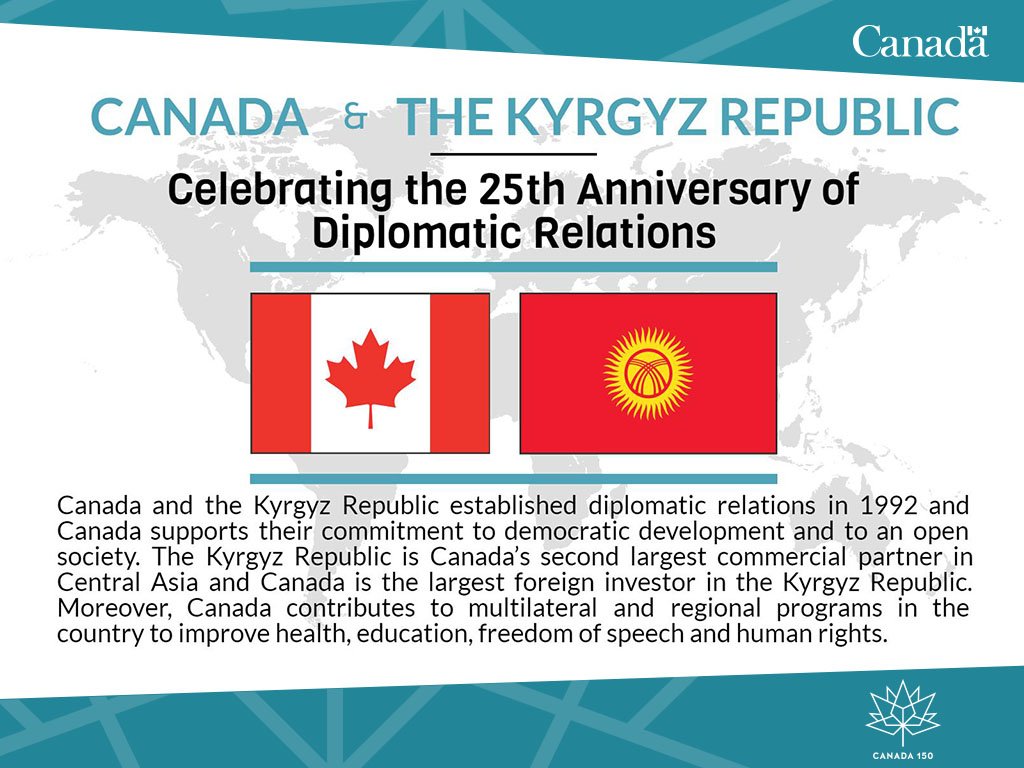 #OnThisDay We are celebrating 25 years of diplomatic relations with the #KyrgyzRepublic! #Canada150 http://ow.ly/IKzv30927pM pic.twitter.com/meyEPGIU3g