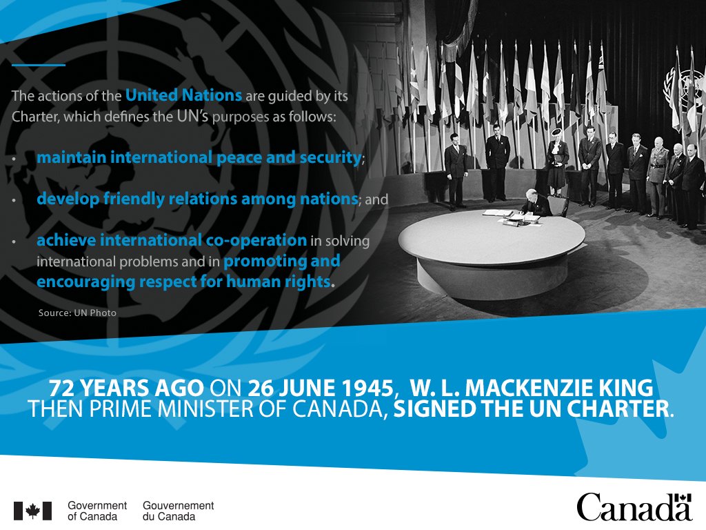 #OTD 72 years ago, Canadian PM William Lyon Mackenzie King signed the @UN Charter! #Canada150pic.twitter.com/OzKf7RIw1q