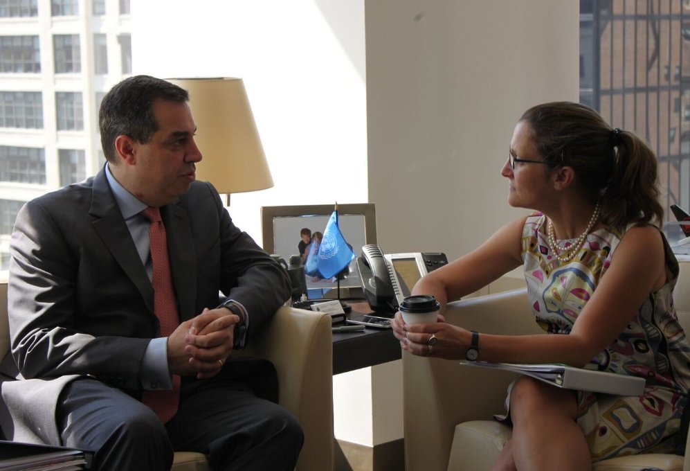 Min. Freeland discussed security/stability and the refugee crisis with #Jordan Minister of Planning and Intl coop., H.E. Mr. Imad Fakhourypic.twitter.com/YvlalZyZ98