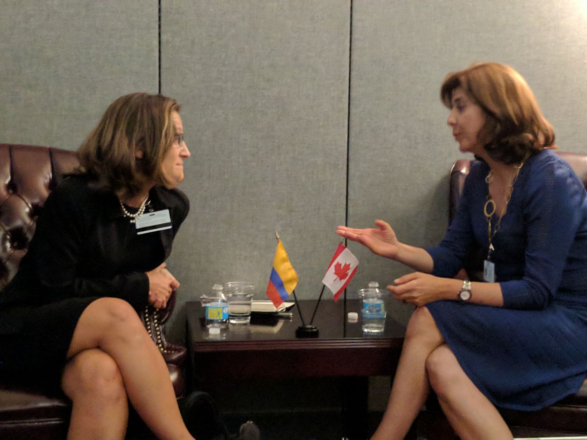 Min Freeland met with #Colombia MFA María Ángela Holguín & discussed shared support for Venezuelans & for democracy in #Venezuela. #UNGApic.twitter.com/AKAXW2jgw4