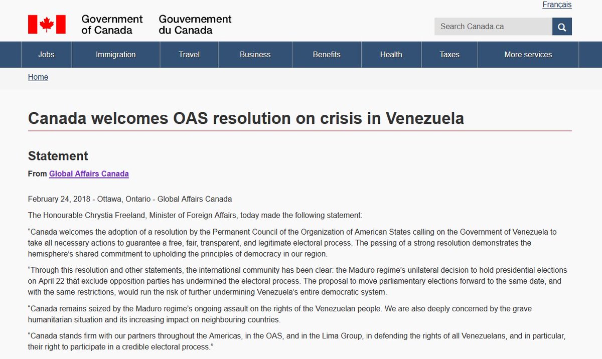 Canada welcomes OAS resolution on crisis in #Venezuela http://ow.ly/hdQI30iBaKj