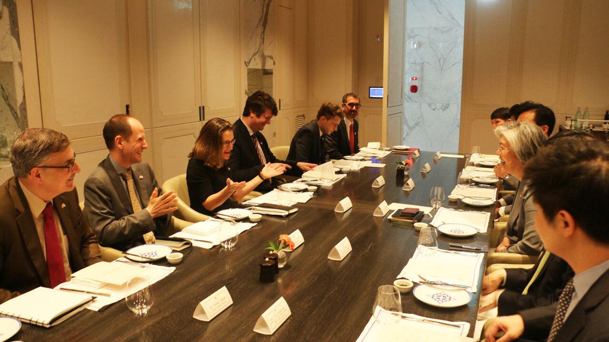 Minister Freeland and #SouthKorea Foreign Minister Kang Kyung-wha discussed recent developments on #KoreanPeninsula and Canada support for inter-Korean dialogue. Minister Freeland also thanked Minister Kang for commitment to #GenderEquality @MOFAkr_engpic.twitter.com/mVmdK0UbCq
