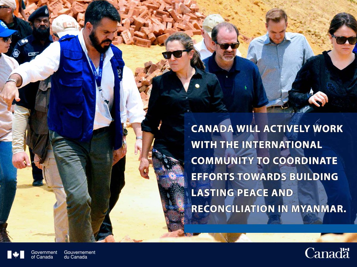Canada is committed to playing a strong diplomatic role on #Rohingya crisis in international fora and will advocate for effective coordination and cooperation of efforts to address this ongoing human tragedy in #Myanmar and #Bangladesh. http://ow.ly/5UKh30k9qv8 pic.twitter.com/BjnpqtQGgt