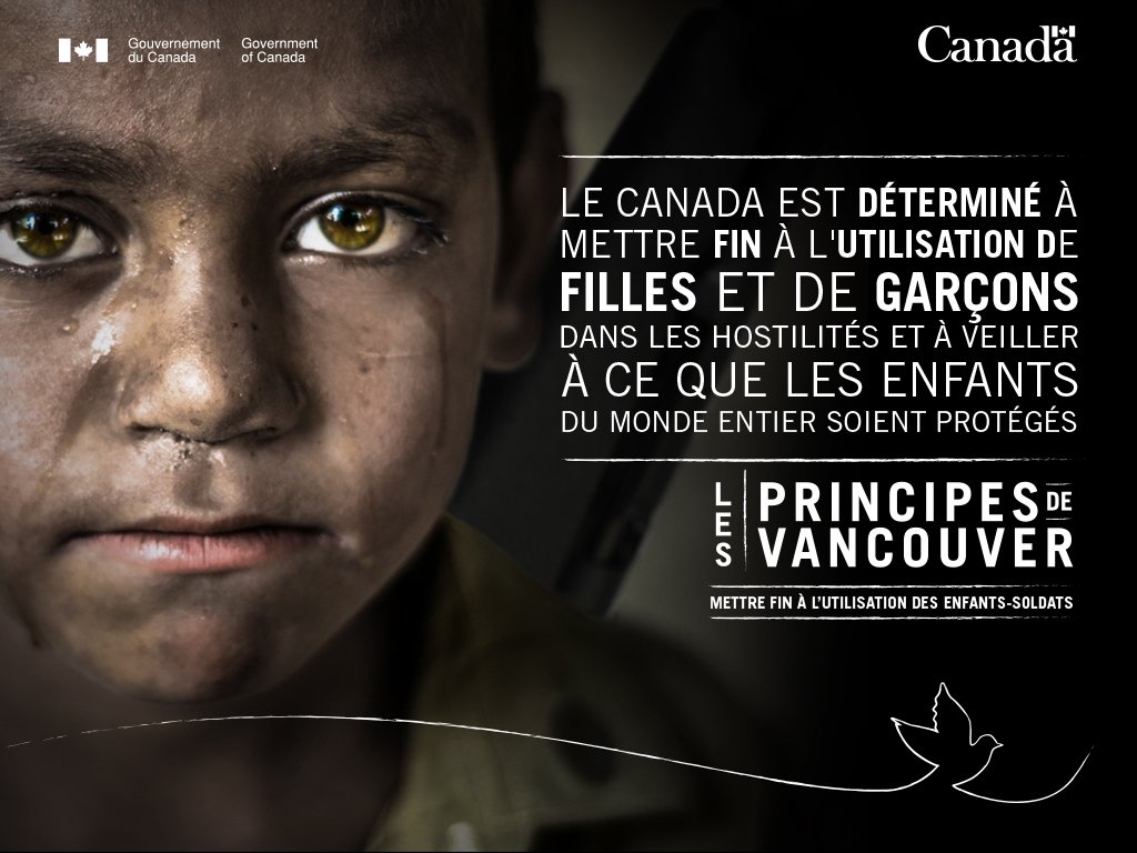 Le Canada est fier que 68 États membres aient endossé les #PrincipesDeVancouver. Nous encourageons d’autres États membres à les endosser afin d’aider à prévenir le recrutement et l'utilisation d'#EnfantsSoldats. http://ow.ly/RAOM30mEbRc pic.twitter.com/B6bbaaMvMo