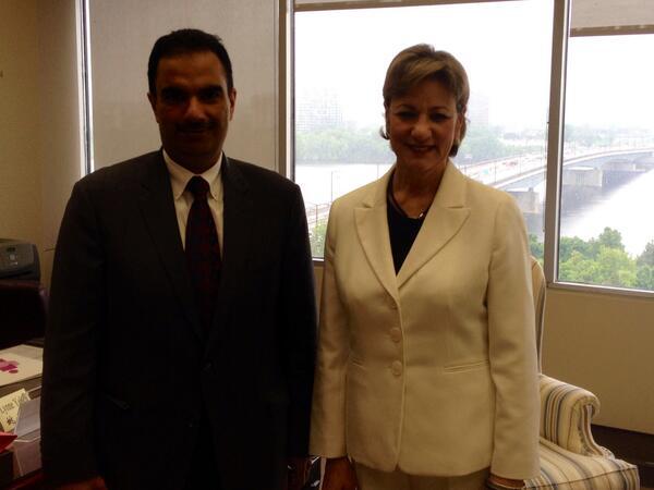Heureuse de travailler avec Fahad Mohamed Kafoud, ambassadeur du #Qatar, pr renforcer relations bilat. @Lynne_Yelichpic.twitter.com/oyfmstPvR8