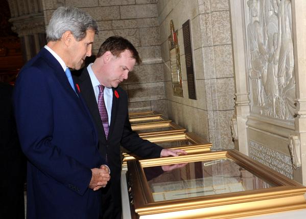 @HonJohnBaird et @JohnKerry se sont arrêtés pour contempler les Livres du Souvenir lors de la visite du Parlementpic.twitter.com/XwbrWpLXsf