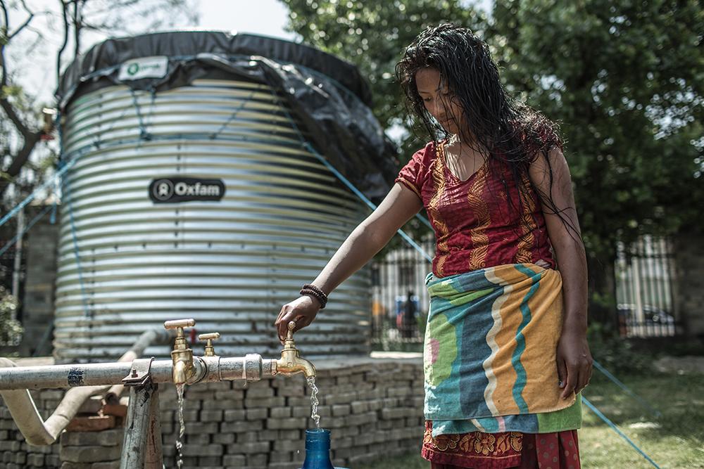 Une femme obtient de l’eau potable d’Oxfam. Eau potable au #Népal : Canada appuie des partenaires comme @oxfamcanadapic.twitter.com/bOMxZ79lb6