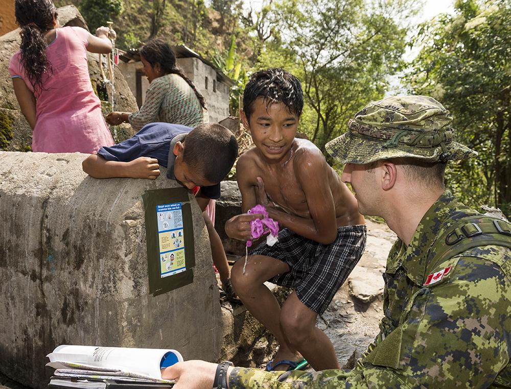 Un membre de #DART Canada vulgarise une affiche d’hygiène préventive à des enfants de Balephi, Sindhupalchok #Népalpic.twitter.com/gWCwpVlNgz