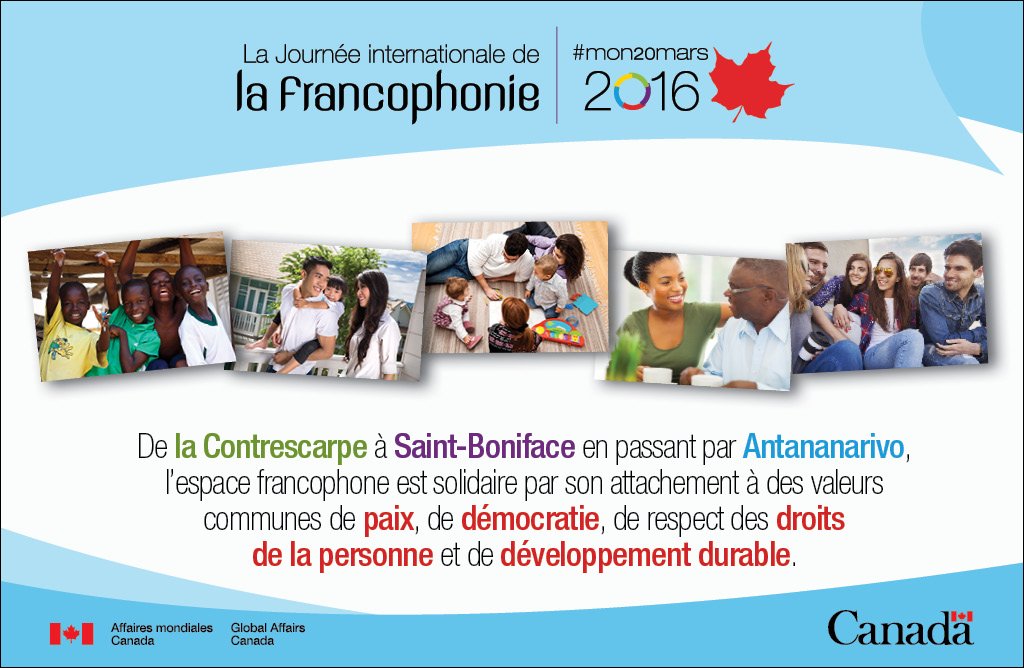 La #Francophonie: Valeurs communes de paix, démocratie, respect des droits de la personne et dév. durable #mon20marspic.twitter.com/fpizTFS1bs