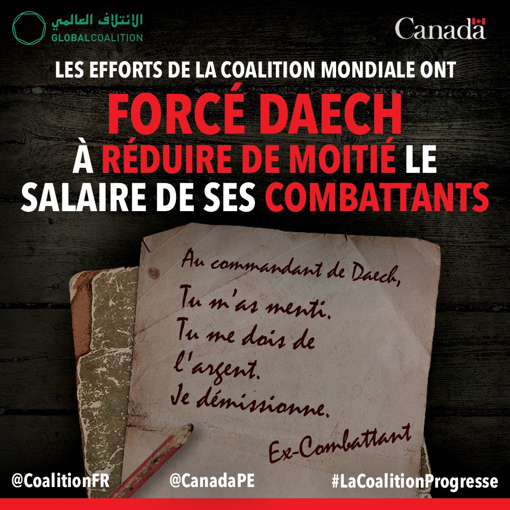 Les efforts de la @CoalitionFR forcent #Daech à couper le salaire de ses combattants #LaCoalitionProgressepic.twitter.com/j4q50Dz4kl