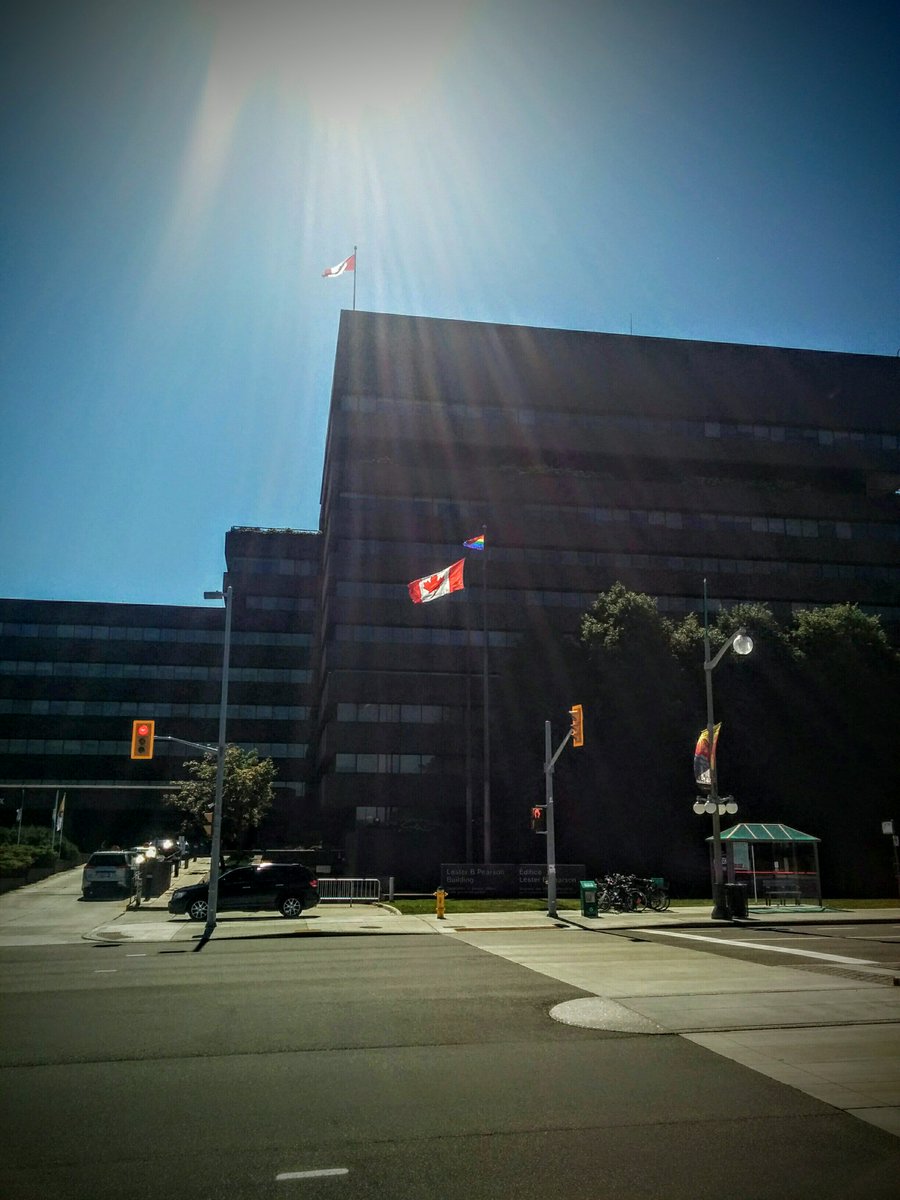 Drapeau de la fierté flottant à Affaires mondiales Canada pour appuyer la communauté #LGBTI #Fierté2016 #LoveisLovepic.twitter.com/dxtDoFWEZw