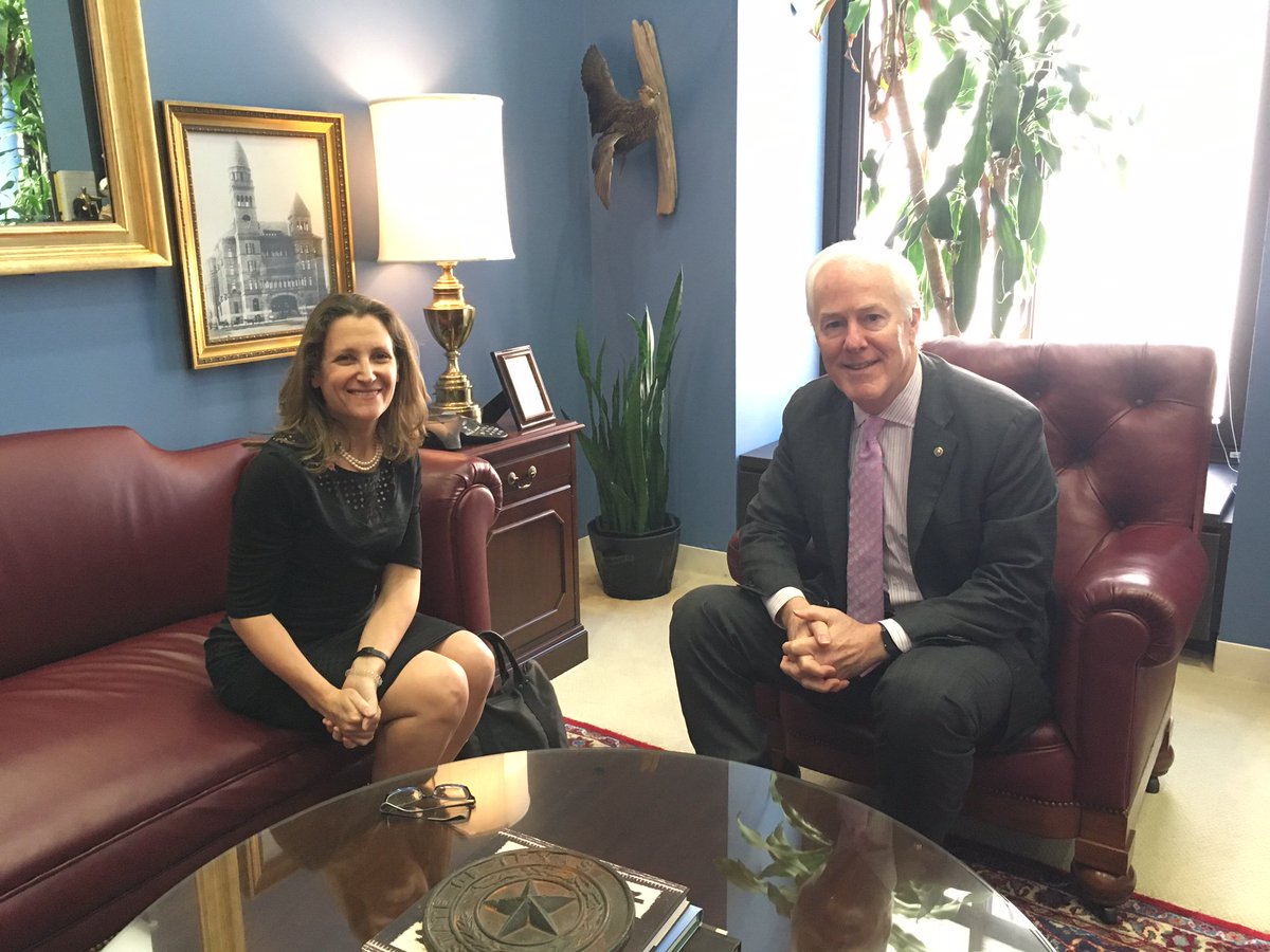 Ministre Freeland rencontre le sénateur américain @JohnCornyn pr discuter collaboration #CanÉU en matière de commerce, frontières et défensepic.twitter.com/vXpCVj5ebX