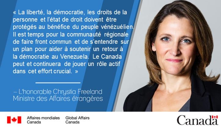 Le Canada demandera que des gestes soient posés à l’Organisation des États américains au sujet du #Venezuela http://ow.ly/C7o330c6PEY pic.twitter.com/tybk0LZYIV