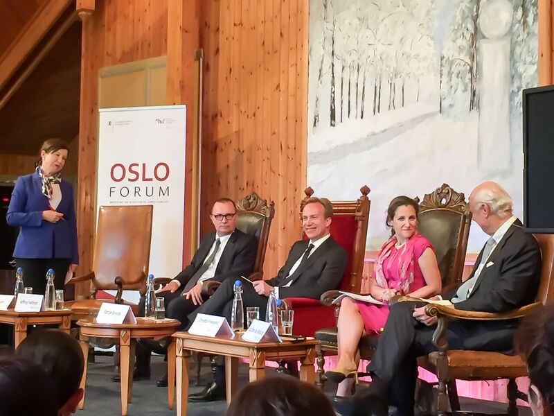 La min Freeland participe à table ronde au #Osloforum2017 et discute de l’engagement du Canada à l’#ONU et en matière de maintien de la paixpic.twitter.com/pgPSCz3buX