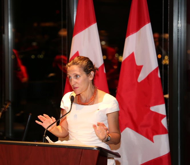 La ministre Freeland avec amis et représentants du monde entier pour célébrer la #FêteDuCanada #Canada150pic.twitter.com/xBFb7AVGst