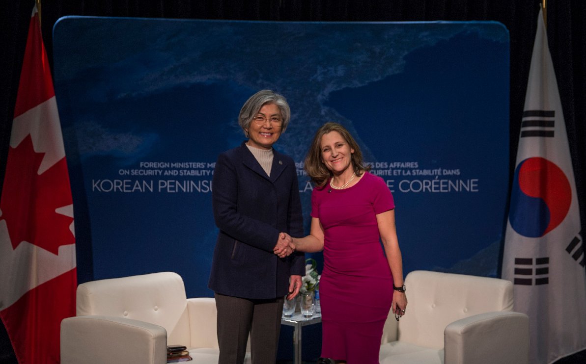 La min Freeland a rencontré son homologue #CoréeduSud, Kang Kyung-wha, à la réunion #Vancouver & ont discuté reprise pourparlers av #CoréeduNord sur coop. #olympique + apaisement tensions militaires. Elles ont convenu de travailler en étroite coop #PéninsuleCoréenne. @MOFAkr_engpic.twitter.com/uS6aseVucn