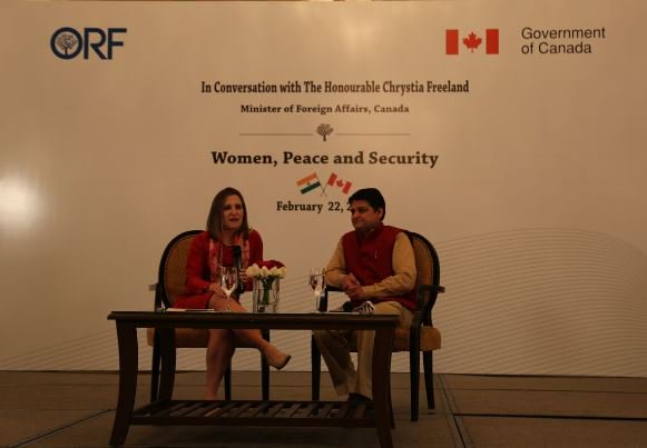 La ministre Freeland s’est adressée à des membres d’organisations de la société civile au cours d’une discussion informelle organisée par @ORFonline sur la politique étrangère #féministe du Canada et notre engagement à l’égard du programme sur #FemmesPaixSecuritépic.twitter.com/XesYz9U7Ph