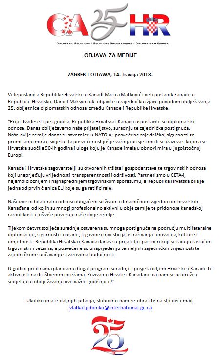 Nous célébrons 25 ans de relations diplomatiques avec la #Croatie; un ami important, un allié fidèle et un partenaire de commerce et d’investissement de plus en plus important pour le Canada! @MVEP_hrhttps://twitter.com/CanadaCroatie/status/984749363971940353 …