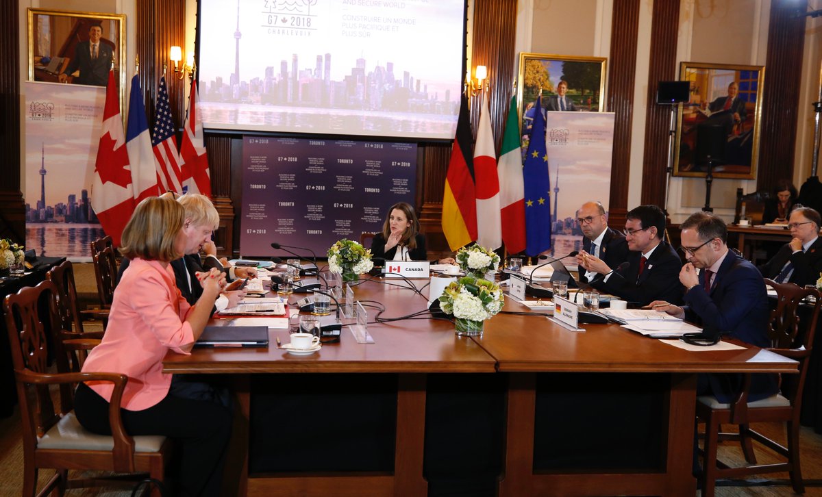 La ministre Freeland travaille avec ses homologues du #G7 pour traiter des graves enjeux de #sécurité et des problèmes #humanitaires persistants qui résultent de l'instabilité au #MoyenOrient, y compris en #Syrie.pic.twitter.com/sVi0A40AgJ