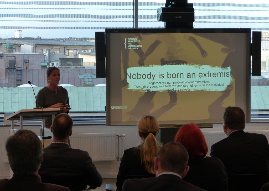 Anna Hedin Ekström presents the work of the National Coordinator Against Violent Extremism http://bit.ly/1MP95F3 pic.twitter.com/XDAhP4bc5d