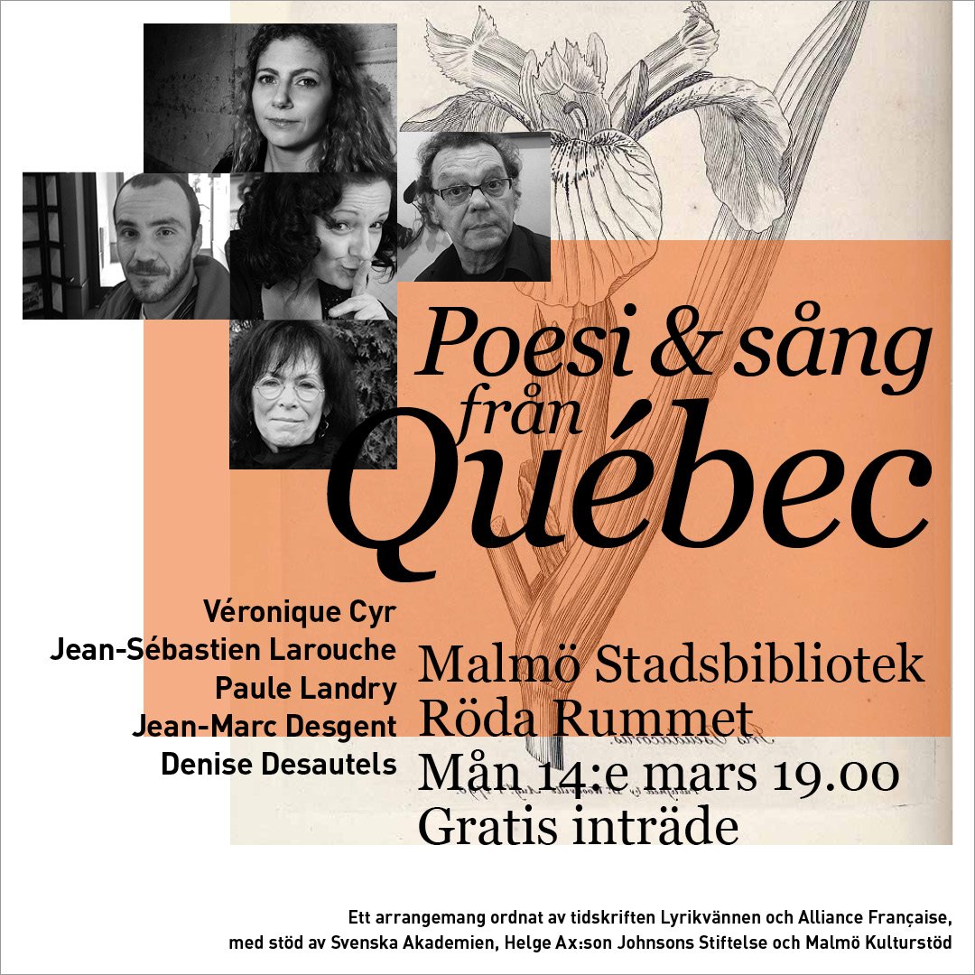 #FrancophonieMonth: Poetry & songs from Quebec tonight @malmobibblan at 7pm. Free entrance! http://bit.ly/24sKC0n pic.twitter.com/egPxX7PDWP
