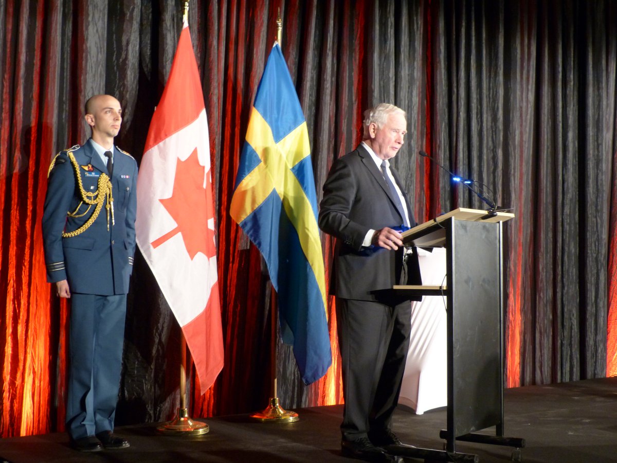 .@GGDavidJohnston addressing the Friends of Canada at a reception yesterday @TheVasaMuseum #GGSwedenpic.twitter.com/aNXl76vajN