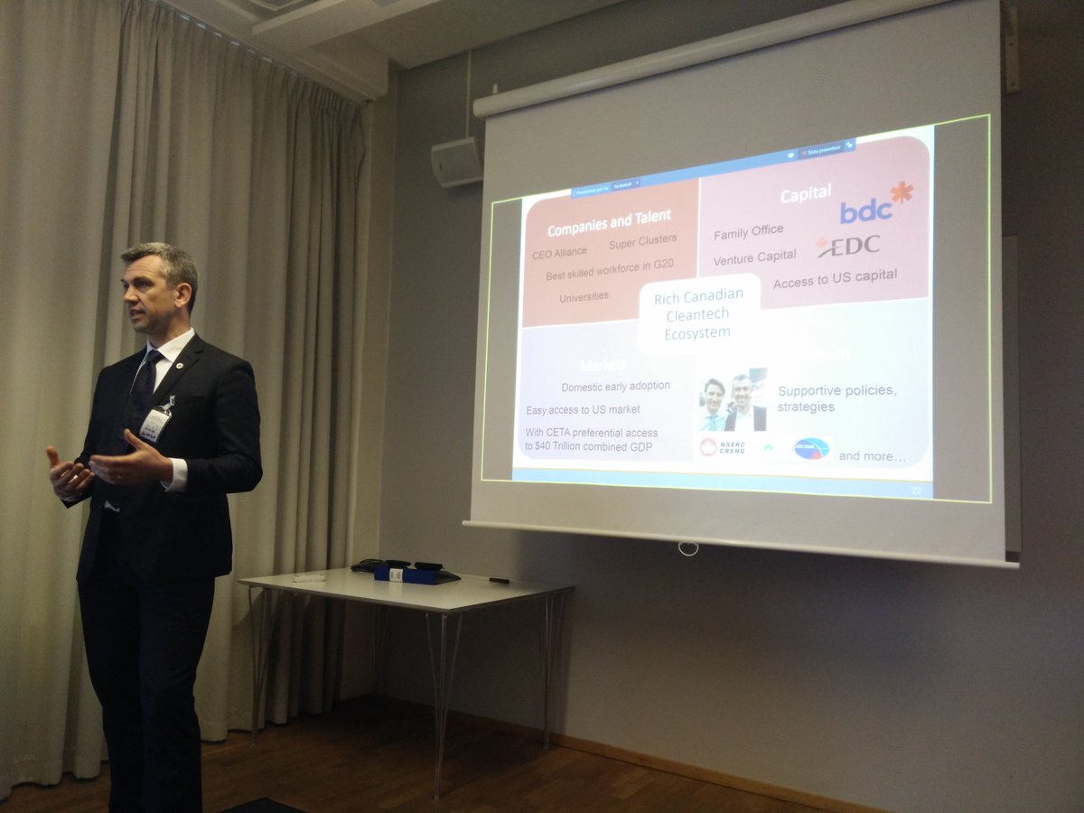 .@robniven of @CarbonCure talks about the @invest_canada Cleantech Ecosystem at #Stockholm eventpic.twitter.com/PD6BAv3IJ7