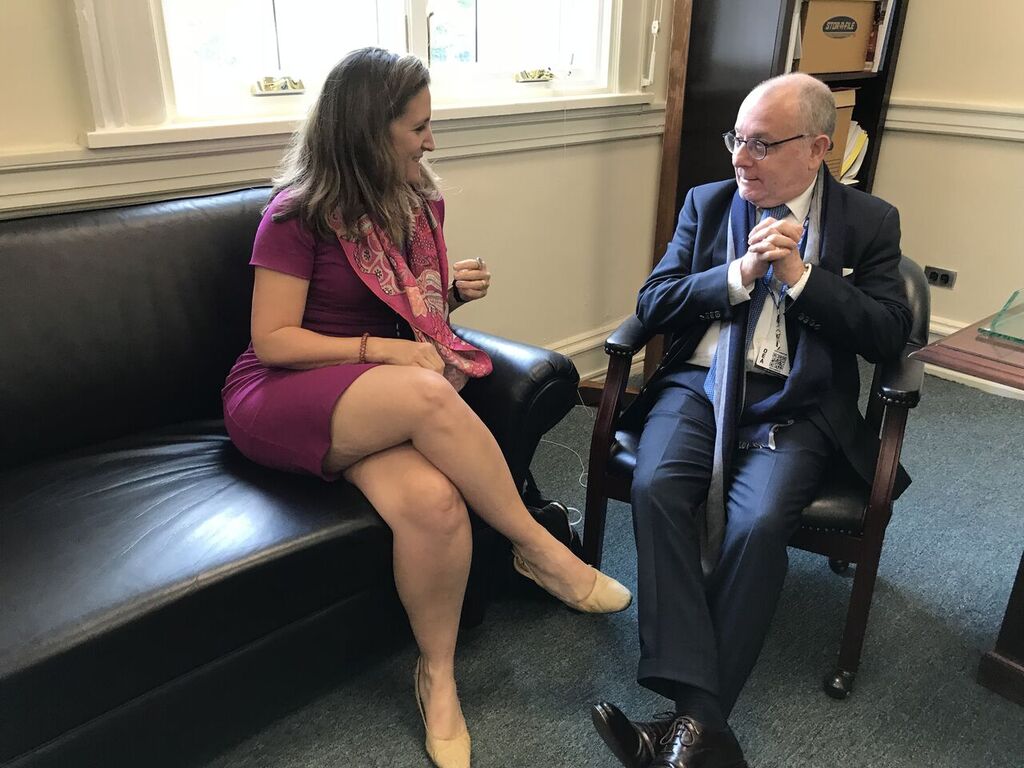 While at the 48th #OASassembly, Minister Freeland had a discussion with her counterpart from #Argentina, @JorgeFaurie. Both countries work together to address global economic challenges within the G7 and G20, which Canada and Argentina are respectively hosting in 2018.pic.twitter.com/C6O4YlLsbq