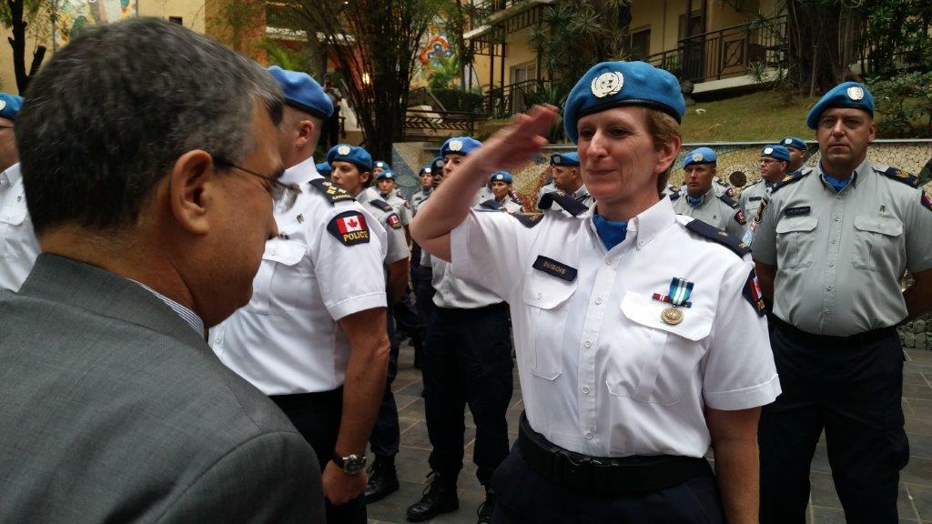 RCMP officer & Canadian Contingent Commander in Haiti Insp. Lucie Dubois receives her @UN medal in Port au Princepic.twitter.com/ykcPiDL2lq