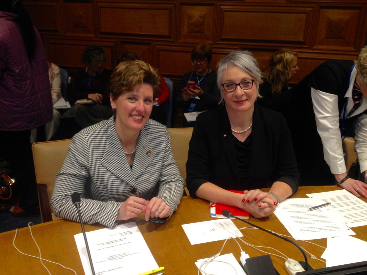 Min. @PattyHajdu & @mclaudebibeau prepare to speak at a Cdn event co-hosted w/ Liberia @Panama_UN & @NGOWGG #CSW60pic.twitter.com/MwVm4vxATo