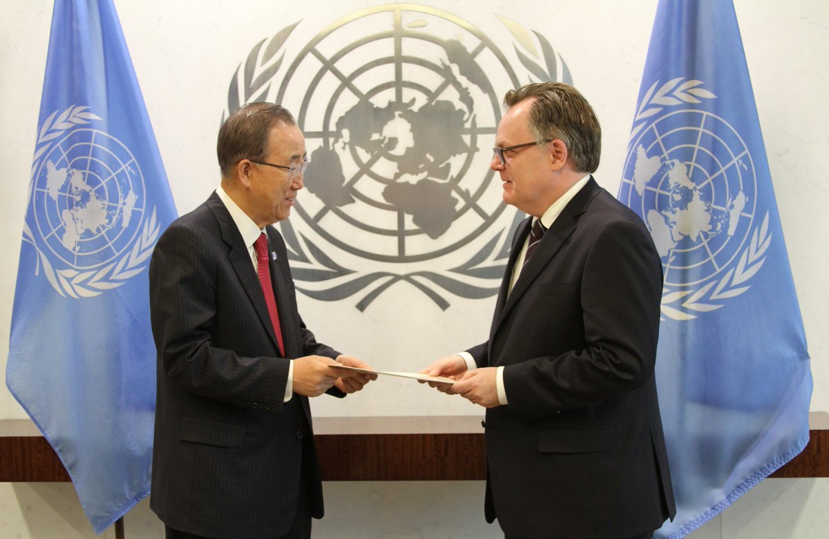 Canadian Ambassador to the @UN Marc-André Blanchard presents his credentials to #UNSG Ban Ki-Moonpic.twitter.com/XQ21amjaCz