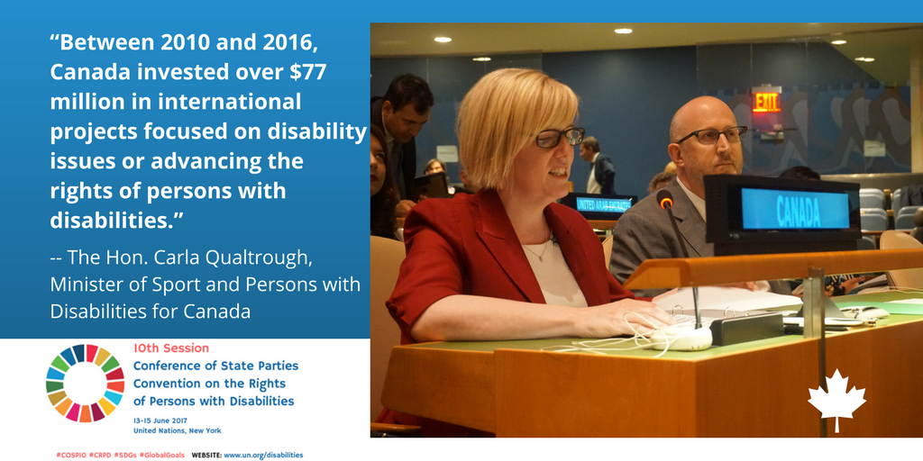.@AccessibleGC Minister Qualtrough at #CRPD #COSP10 #SDGs #disabilityrightspic.twitter.com/bQ5YEQyPzN