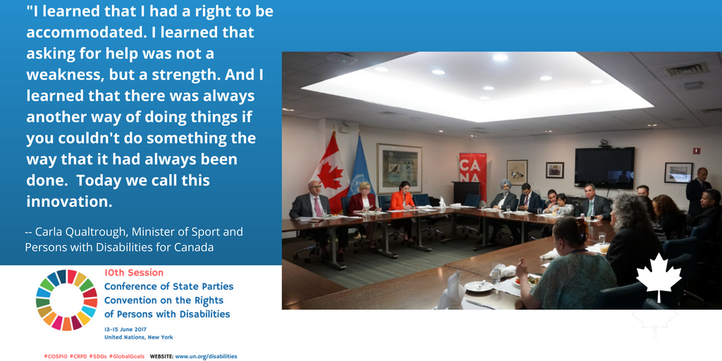 Great exchange of ideas & success stories with international counterparts on #DisabilityRights w/ @AccessibleGC Minister Qualtrough #COSP10pic.twitter.com/txrB0gX4rn