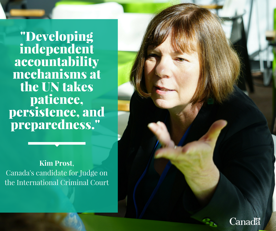 Kim Prost, Canada's candidate for Judge on the @IntlCrimCourt spoke yesterday at an Experts Workshop on UN Accountability and International Law at @SetonHallLaw.pic.twitter.com/hUY3whYwM1