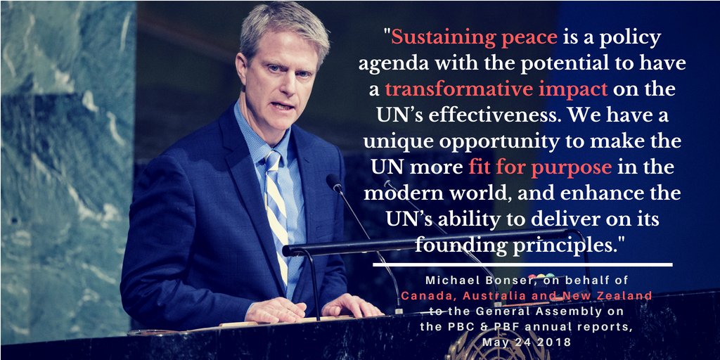 This morning, Canada delivered #CANZ's statement to the #UNGA's annual debate on the Report of the #PBC and on the Report of the Secretary General on the @UNPeacebuilding Fund -pic.twitter.com/rDmt9oGZQm
