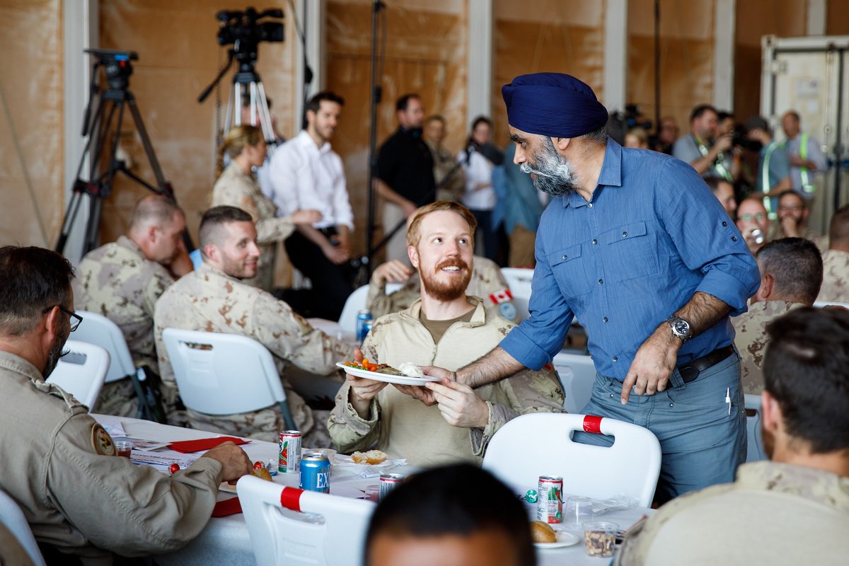 Prime Minister Justin Trudeau, accompanied by the Minister of Defence, Harjit Sajjan, and the Chief of the Defence Staff, General Jonathan Vance, meets with