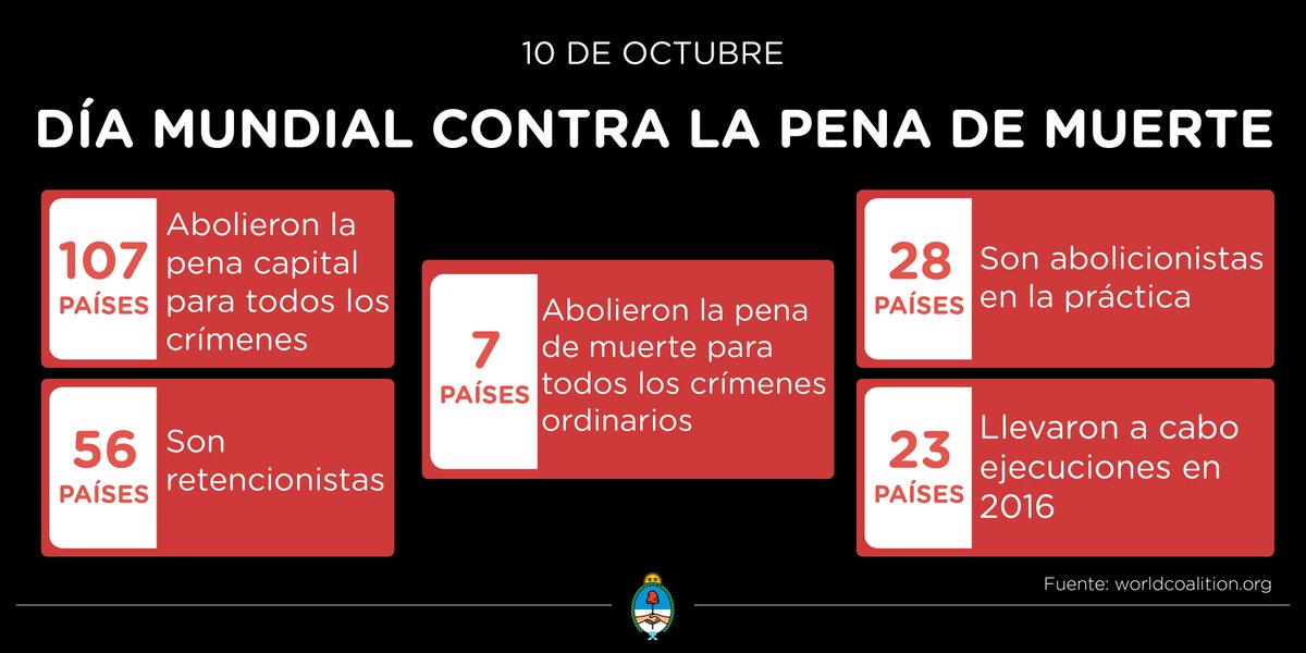 #DíaMundialcontralaPenadeMuerte | Argentina mantiene una firme posición en contra de la pena de muerte para lograr su abolición universal. Ratificamos todos los instrumentos internacionales, regionales y universales, y participamos activamente en los foros internacionales.pic.twitter.com/ksurjLJYEn
