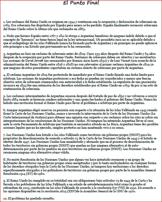 ¿No has oído? La distancia es irrelevante en el derecho internacional. Los isleños están en casa. Argentina es impotente.