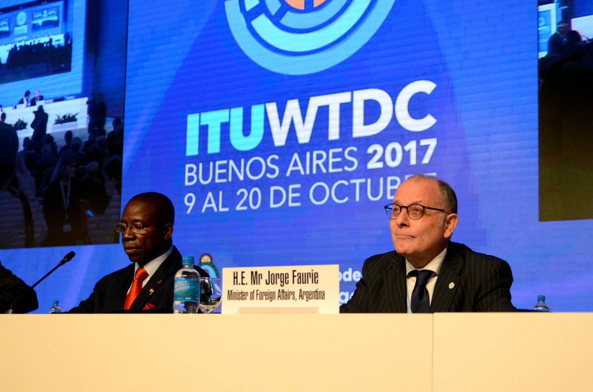 #ITUWTDC | Argentina organiza la Conferencia Mundial de Desarrollo de las Telecomunicaciones 2017. @JorgeFaurie participó de la apertura.pic.twitter.com/9OEqrpbZOd