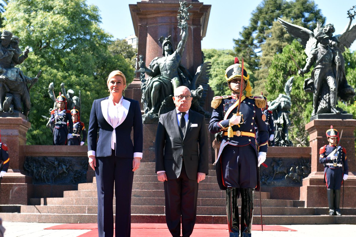 Recibimos a la presidente de Croacia @KolindaGK quien realizó una ofrenda floral en homenaje al Libertador General San Martínpic.twitter.com/QiSZSsuHmP