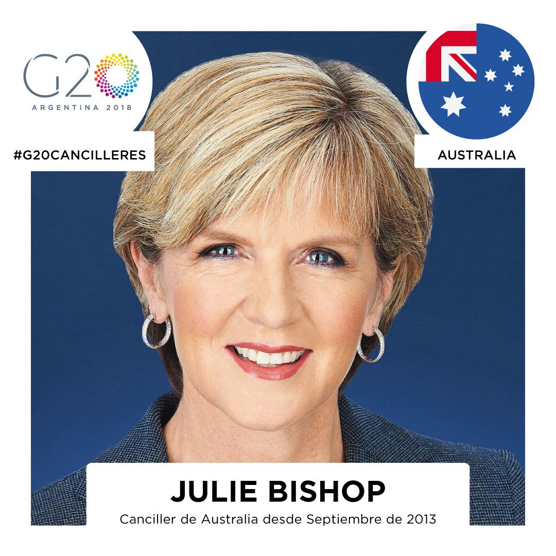 En la Reunión #G20Cancilleres nos visitará @JulieBishopMP, primera canciller mujer de Australia