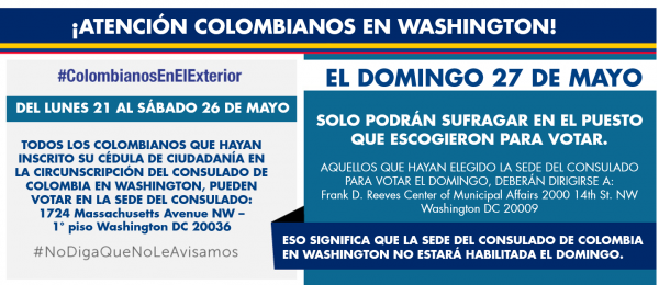 #Atención | #EleccionesColombia ¡colombianos en Washington! http://washington.consulado.gov.co/newsroom/news/2018-05-23/17016 …pic.twitter.com/m1AUNKH60x