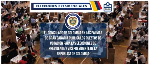 #Consulado de Colombia en Las Palmas de Gran Canaria publica los puestos de votación para las elecciones de Presidente y Vicepresidente de la República de Colombia. #EleccionesColombia #ColombianosEnGranCanaria http://islascanarias.consulado.gov.co/newsroom/news/2018-05-15/16782 …pic.twitter.com/ofNH3KkUmC